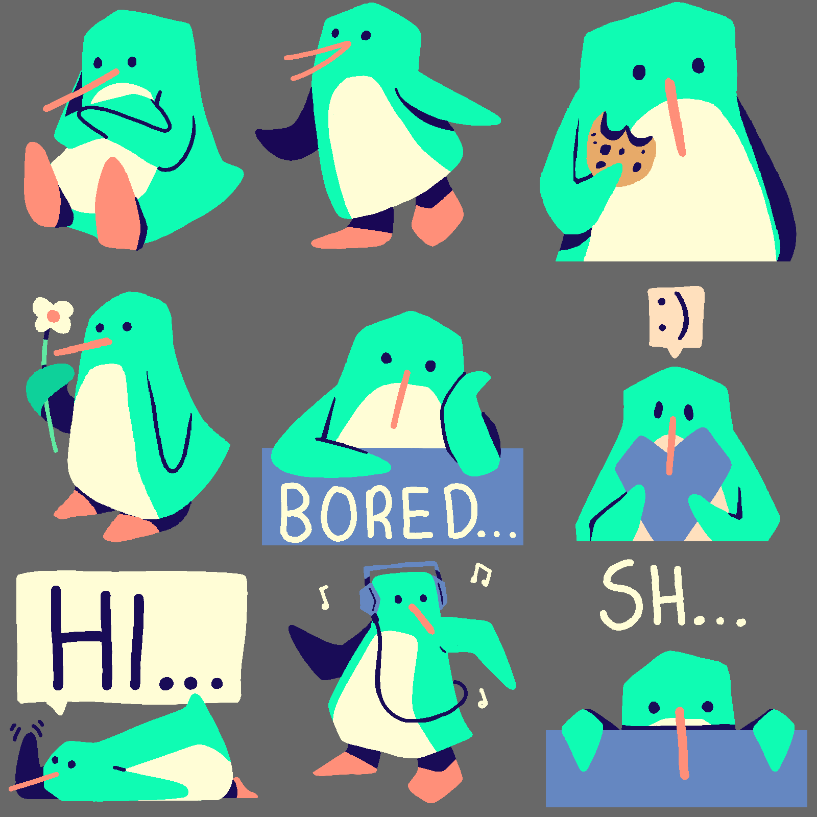 On the art side of things, I made a small Telegram sticker pack of my penguin guy, Snow Cone! Y'all can download it here. I love this guy and I'll probably make another pack in the future :]